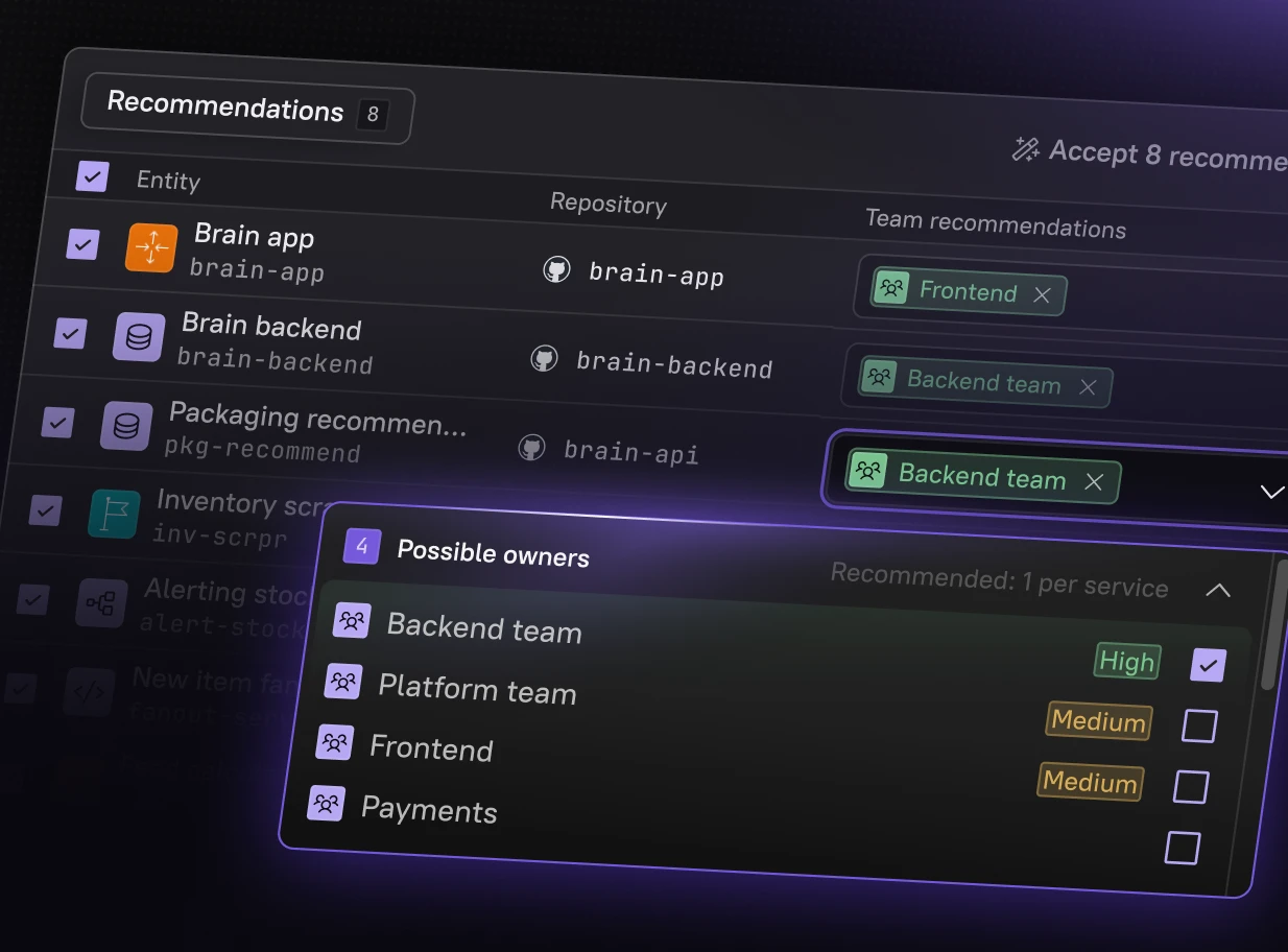 The Cortex AI Ownership Predictions model ensures every service has a clear, verified owner driving faster fixes, smoother migrations, and true accountability.